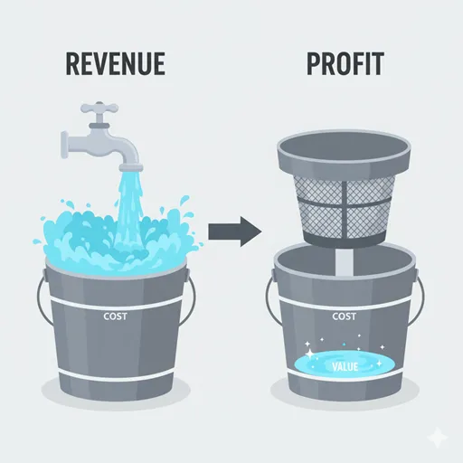 「利益」という言葉は、**「収益から、その収益を得るためにかかったすべての費用(コスト)を差し引いた、最終的な儲け」**というニュアンスが根本にあります。企業がどれだけ効率よく、そして健全に儲けているかを示す、**儲けの質**を測る指標です。