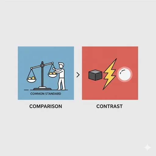 この記事では、論理学とコミュニケーション戦略の専門家としての知見から、「対比」と「比較」の決定的な違いを徹底的に解説します。単なる辞書的な意味に留まらず、それぞれの言葉が持つ**「分析の目的」**と**「表現上の効果」**に焦点を当てて深く掘り下げます。この記事を最後まで読めば、あなたはもう「対比」と「比較」という言葉を曖昧に使うことはなく、常に意図を持って分析し、最も効果的な方法で情報を伝えることができるでしょう。